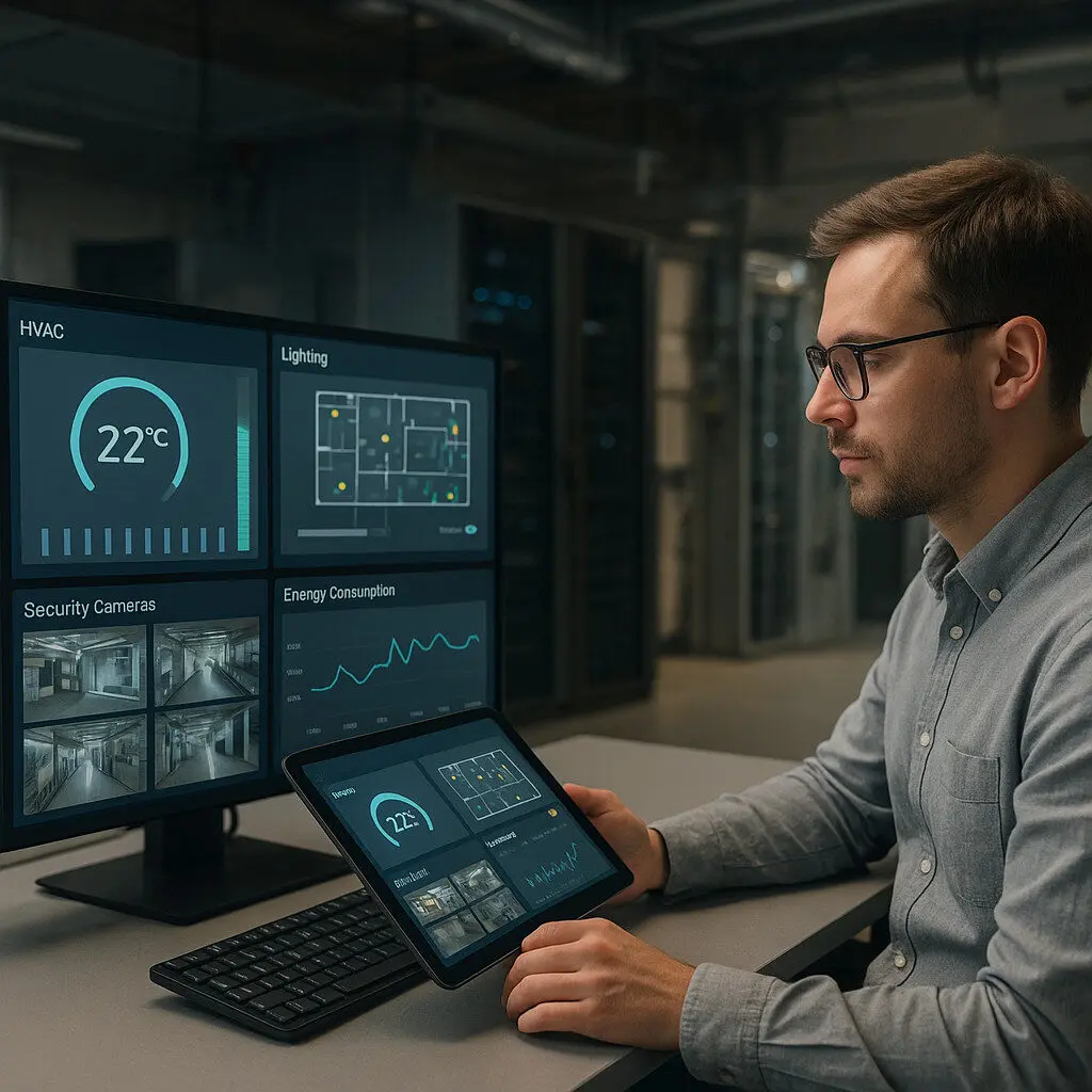 Centralized control systems that manage elevators, parking, networks, and building infrastructure with precision. IoT sensors and monitoring platforms ensure smooth operation, real-time visibility, and optimized facility performance.