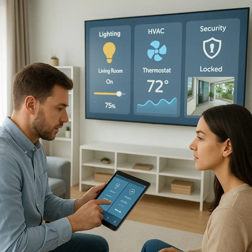 Smart systems that automatically manage HVAC, lighting, environment, and connected devices to improve comfort, safety, and energy efficiency. All building functions work together seamlessly through sensors, smart integration, and mobile or voice-controlled interfaces.